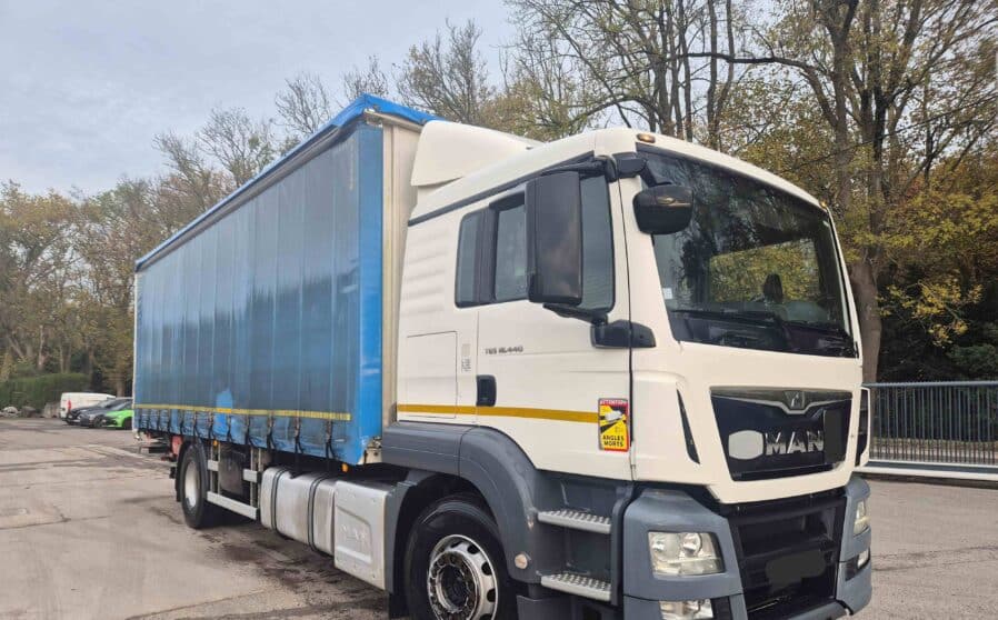 Camión de ocasión MAN TGS 18.440 de 11/2016 con 309.000 km. EURO 6. Motor de 440 cv con cambio automático de 12 vel. Suspensión neumática trasera. Carrocería tautliner con medidas: 7,60 x 2,48 x 2,50 m. Equipado con plataforma elevadora retráctil Dhollandia de 2.000 kg.
