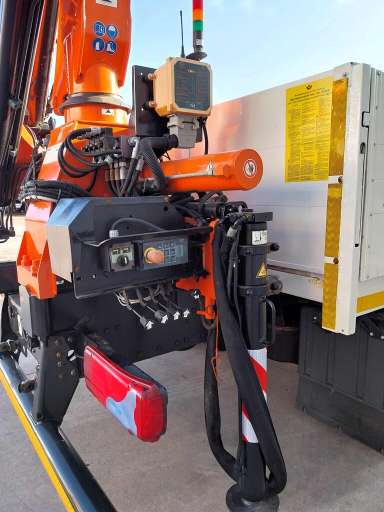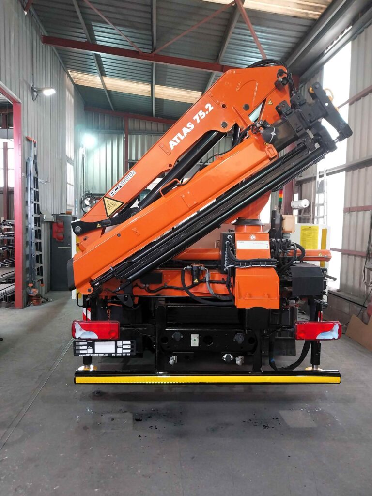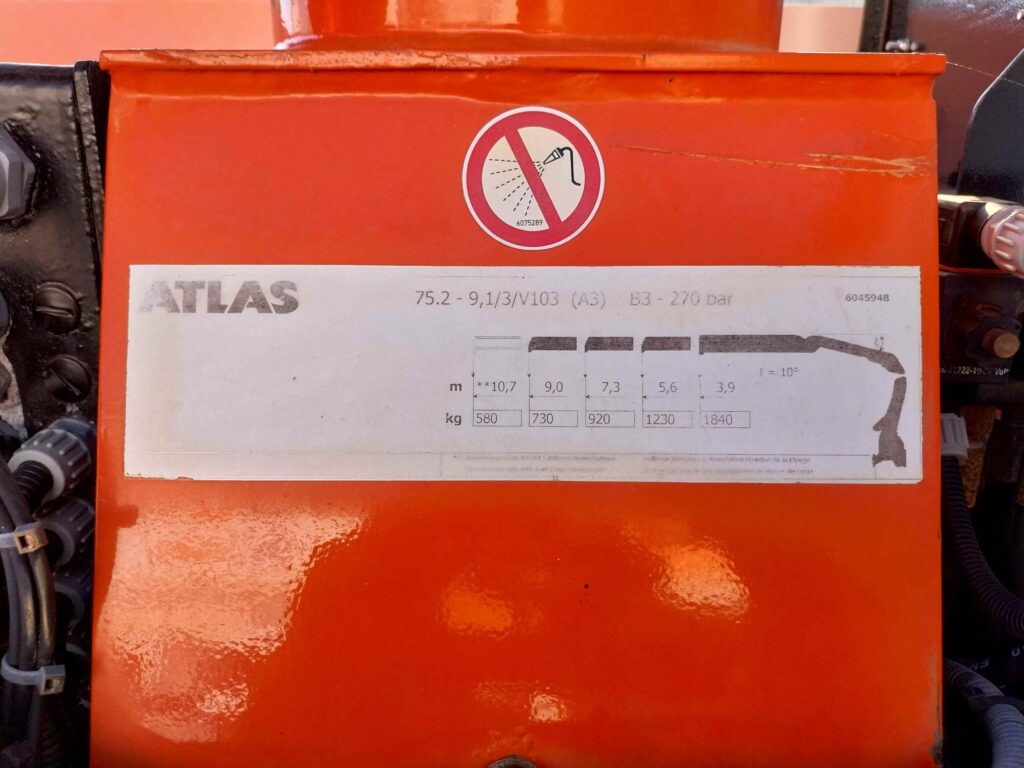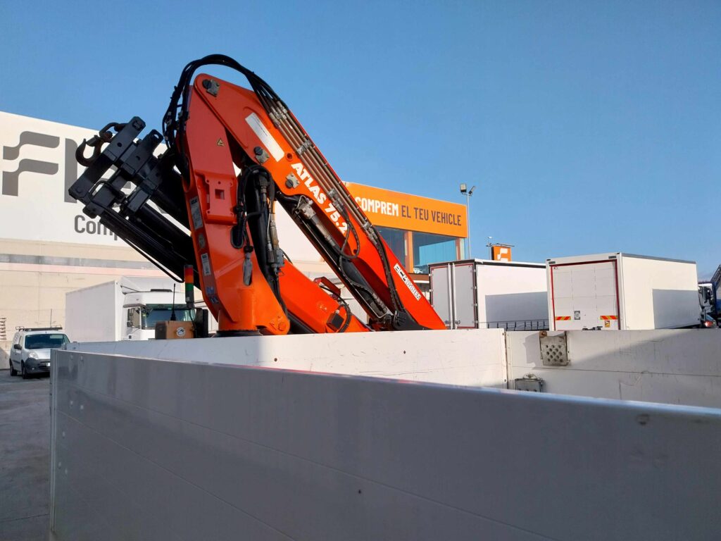 Equipado con grúa Atlas modelo 75.2. 3 salidas hidráulicas. 4 gatos estabilizadores. Mando radiocontrol.