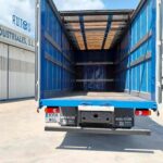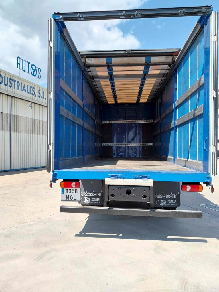 Carrocería tautliner con medidas: 7,50 x 2,48 x altura regulable.