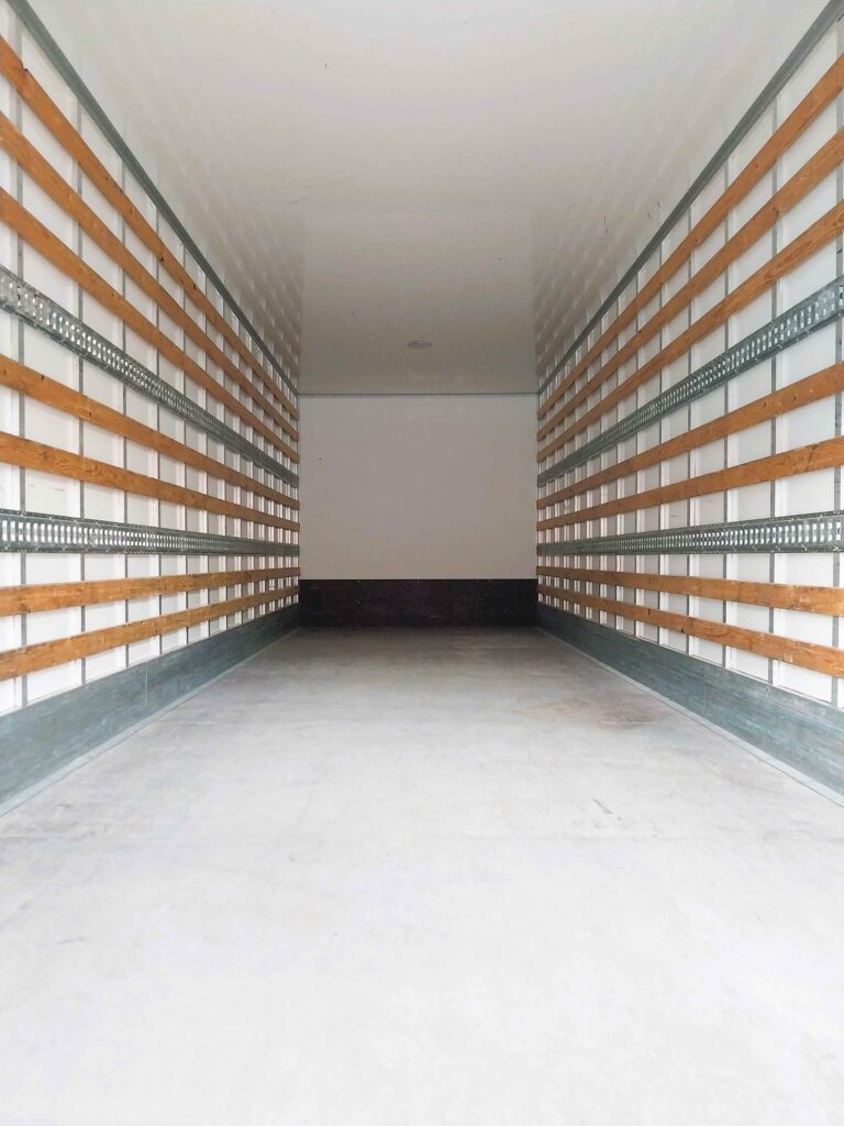 Caja furgón paquetero con medidas: 8 x 2,46 x 2,40 m.