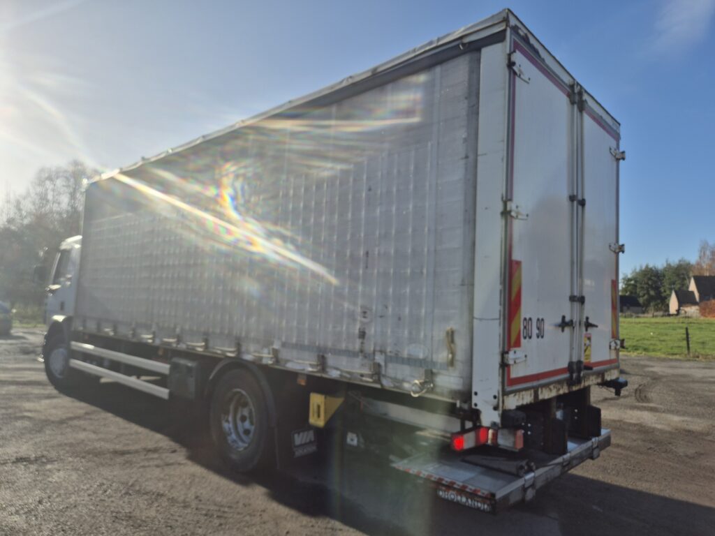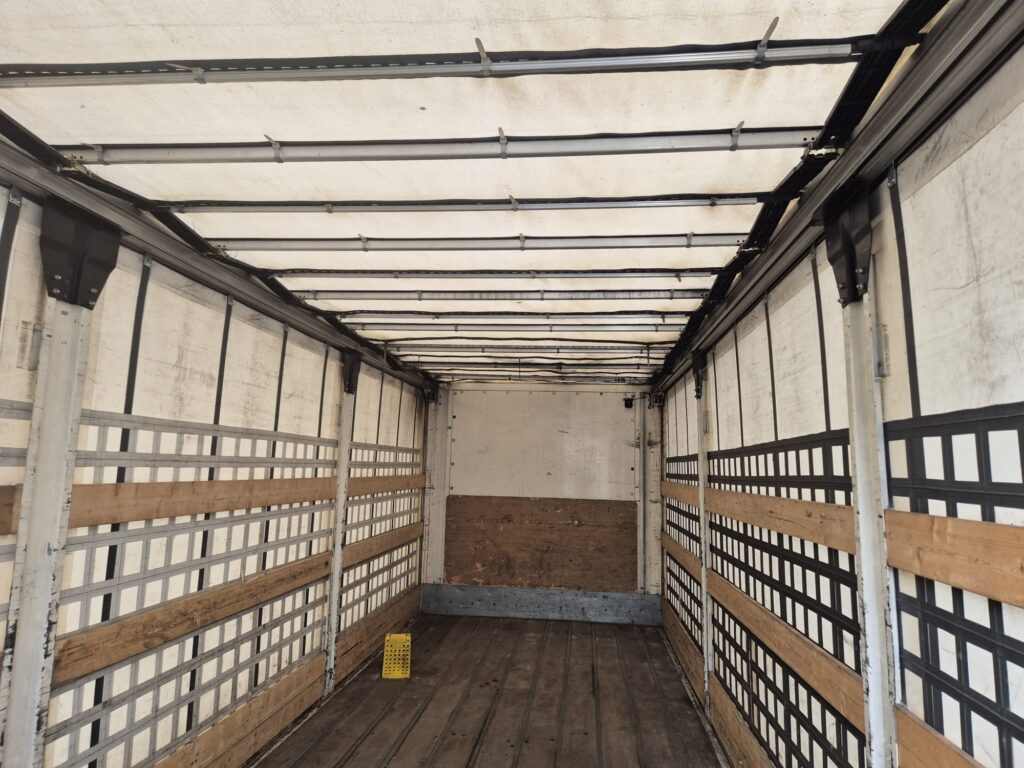 Carrocería tautliner con medidas: 7,50 x 2,48 x 2,45 m.